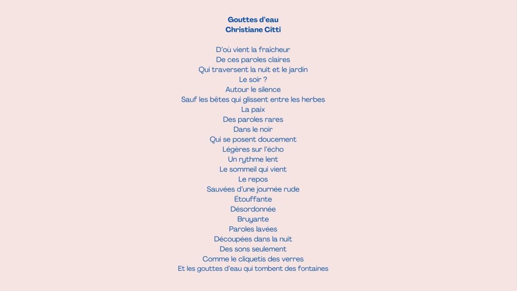 Notre poétesse Christiane Citti nous adresse ce beau poème de l’été qui a été propice à la contemplation du Jardin.