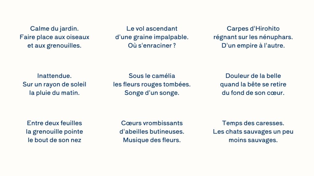 Ginesa Cano, née dans le Gers a gardé le goût des choses simples, un amour de la nature et un art aiguisé de l’observation de la nature humaine. Poétesse et auteure montpelliéraine de nouvelles remarquées pour la vivacité de son écriture, et la finesse de son humour, elle nous a fait l’honneur de garnir notre brouette lors de l’événement de la rentrée « Natures Mortes… encore en vies » de ses Haïkus très appréciés par les visiteurs.
